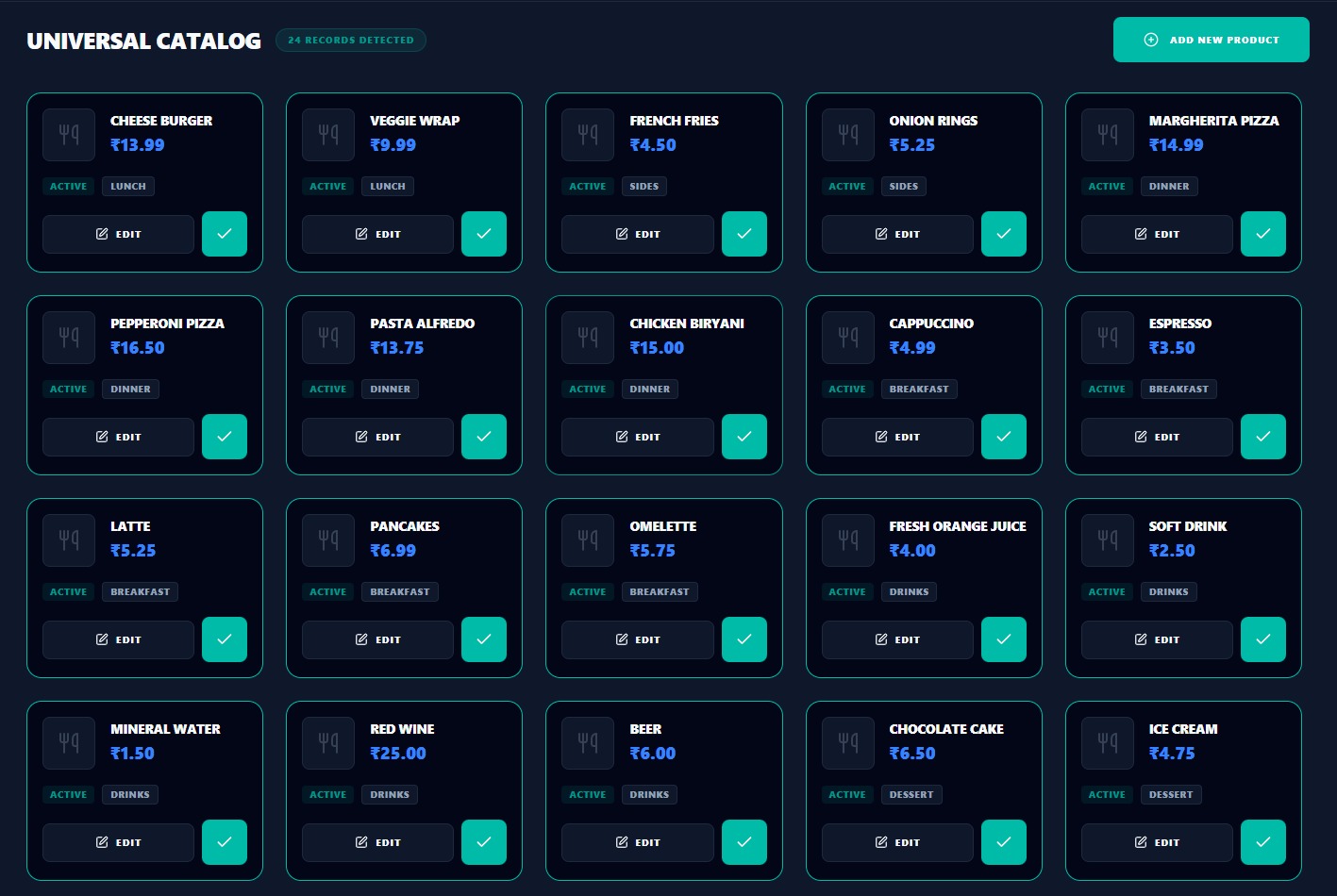 Real-time tracking of every ingredient and recipe.